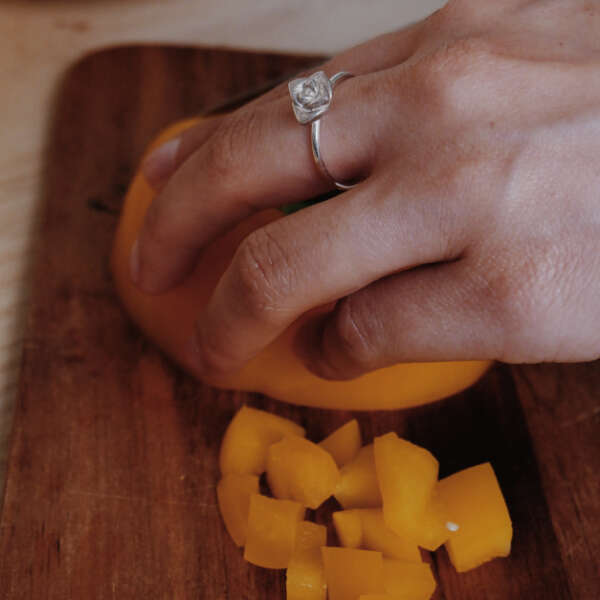 Tutti i gioielli di questa serie sono realizzati con piccoli germogli di piante vere, che, attraverso un segreto di alchimia e la tecnica della micro fusione, diventano pezzi d’argento 925 e Oro 9k. Avendo all’origine una vera piantina, nessun gioiello sarà mai uguale all’altro.