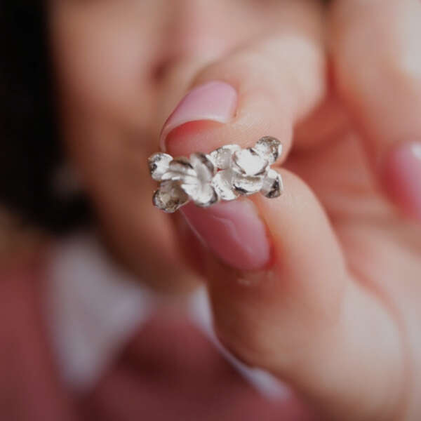 Tutti i gioielli di questa serie sono realizzati con piccoli germogli di piante vere, che, attraverso un segreto di alchimia e la tecnica della micro fusione, diventano pezzi d’argento 925 e Oro 9k. Avendo all’origine una vera piantina, nessun gioiello sarà mai uguale all’altro.