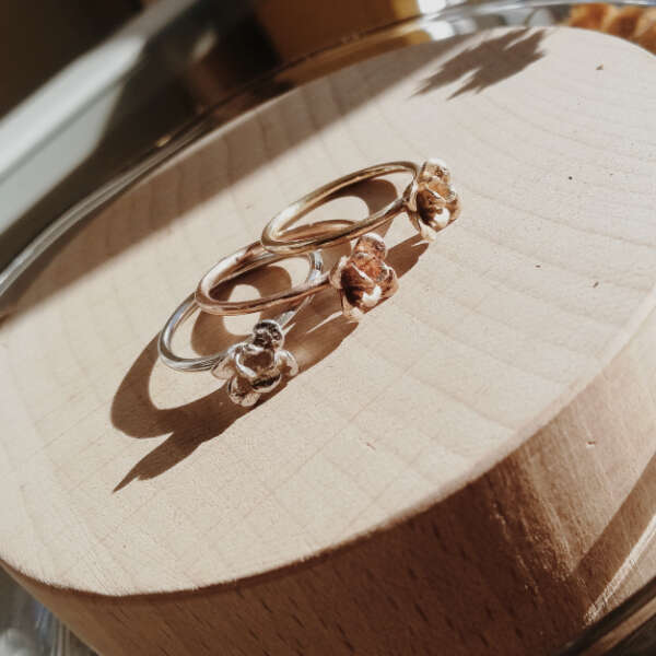 Tutti i gioielli di questa serie sono realizzati con piccoli germogli di piante vere, che, attraverso un segreto di alchimia e la tecnica della micro fusione, diventano pezzi d’argento 925 e Oro 9k. Avendo all’origine una vera piantina, nessun gioiello sarà mai uguale all’altro.