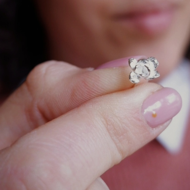 Tutti i gioielli di questa serie sono realizzati con piccoli germogli di piante vere, che, attraverso un segreto di alchimia e la tecnica della micro fusione, diventano pezzi d’argento 925 e Oro 9k. Avendo all’origine una vera piantina, nessun gioiello sarà mai uguale all’altro.
